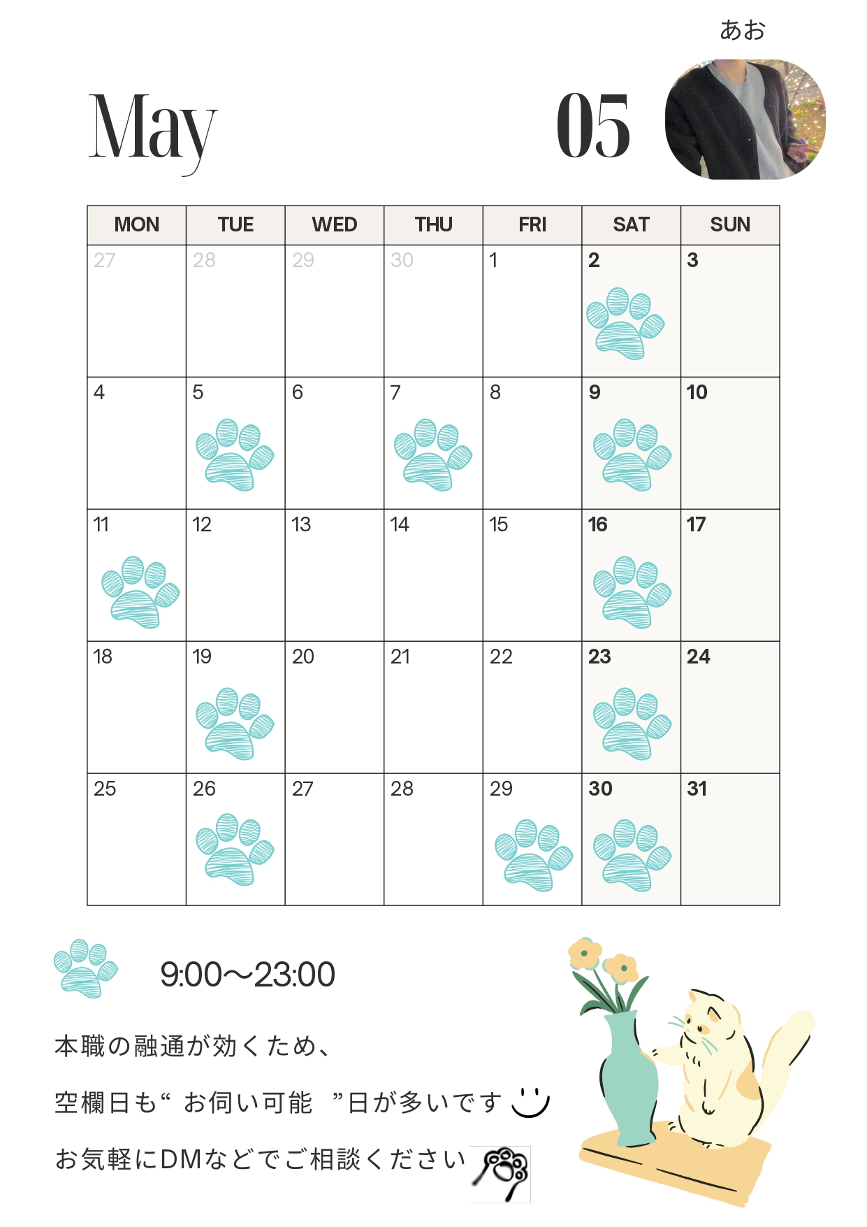 こんにちは、あおです! あっという間に5月ですね… 待ち遠しくもあるGW 天気の良い過ごしやすい日が続くといいですね お会いできること楽しみにしています セラピスト日記 あお よかったらシェアしてね! URLをコピーしました! URLをコピーしました!